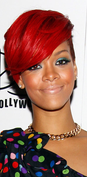 OMG! Rihanna looks sooooo cute in this amazing multi polka-dot D&G one-shouldered jumpsuit. I am looooving everything about this fun and whimsical ensemble. Believe it or not, her fiery red hair grew on me!